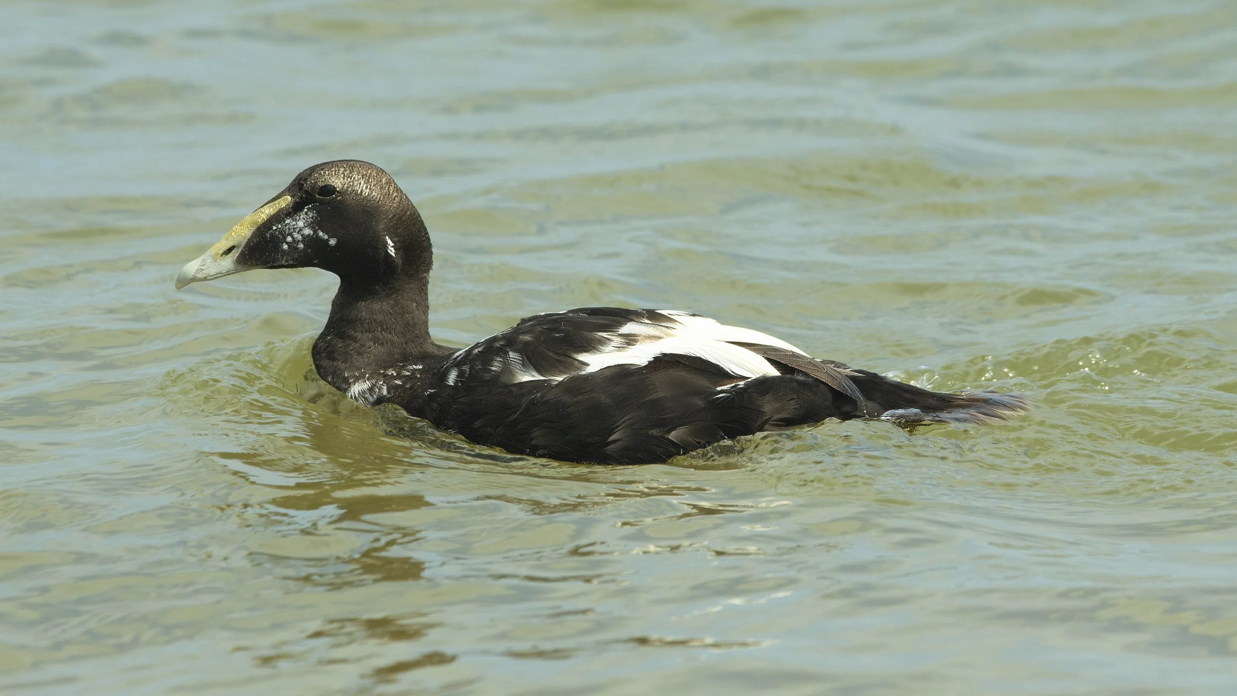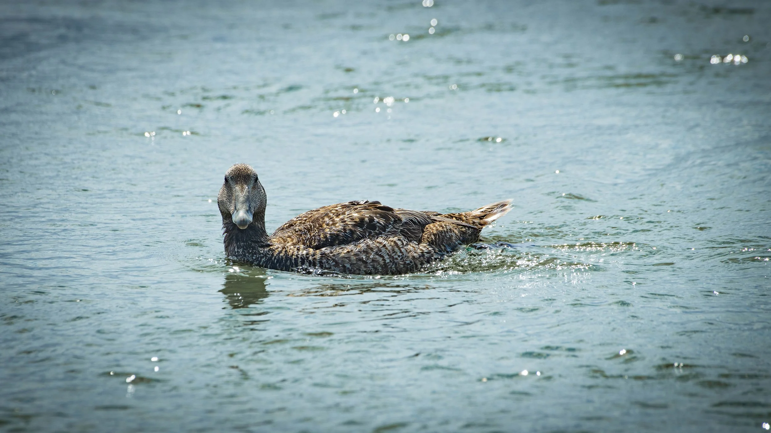 Among the mussel beds, the eiders fed. Females in barred brown, pale-tipped bills dipping and diving. Males in eclipse—dark, unbarred, with white wing flashes like torn paper against the tide. Their call, that unmistakable “Oooooh!”—half-comic, half-haunting—echoed across the flats.